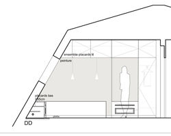Au dernier étage d'un immeuble haussmannien de la place du Maréchal Juin, les chambres de service sont accolées autour des circulations et des espaces communs très larges. Le projet a consisté en la création de deux studios privés et au déplacement des circulations et espaces communs.